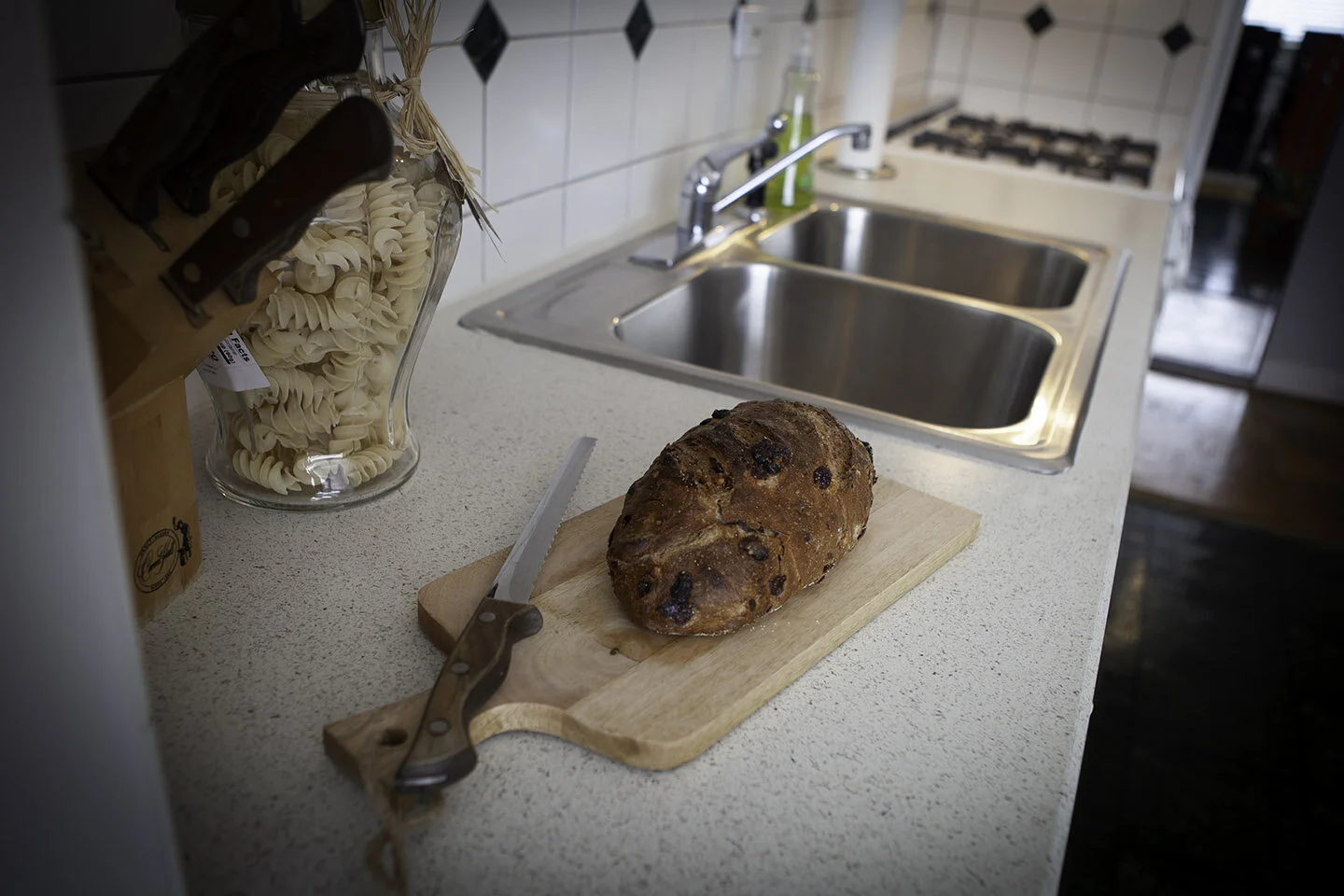 This cozy, bright home comes with refrigerator, dishwasher, microwave, coffee machine, toaster, gas range, chef’s knives, flatware, dinnerware, glassware, cutting boards, and serving dishes all included.